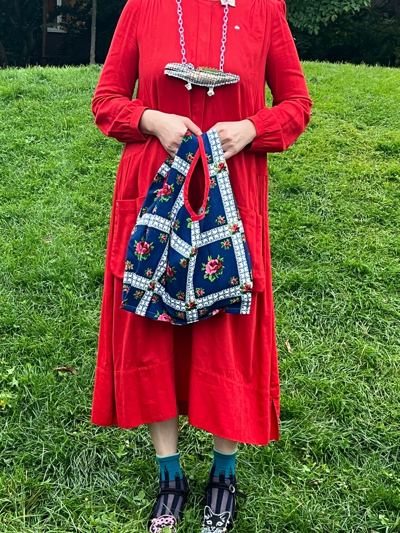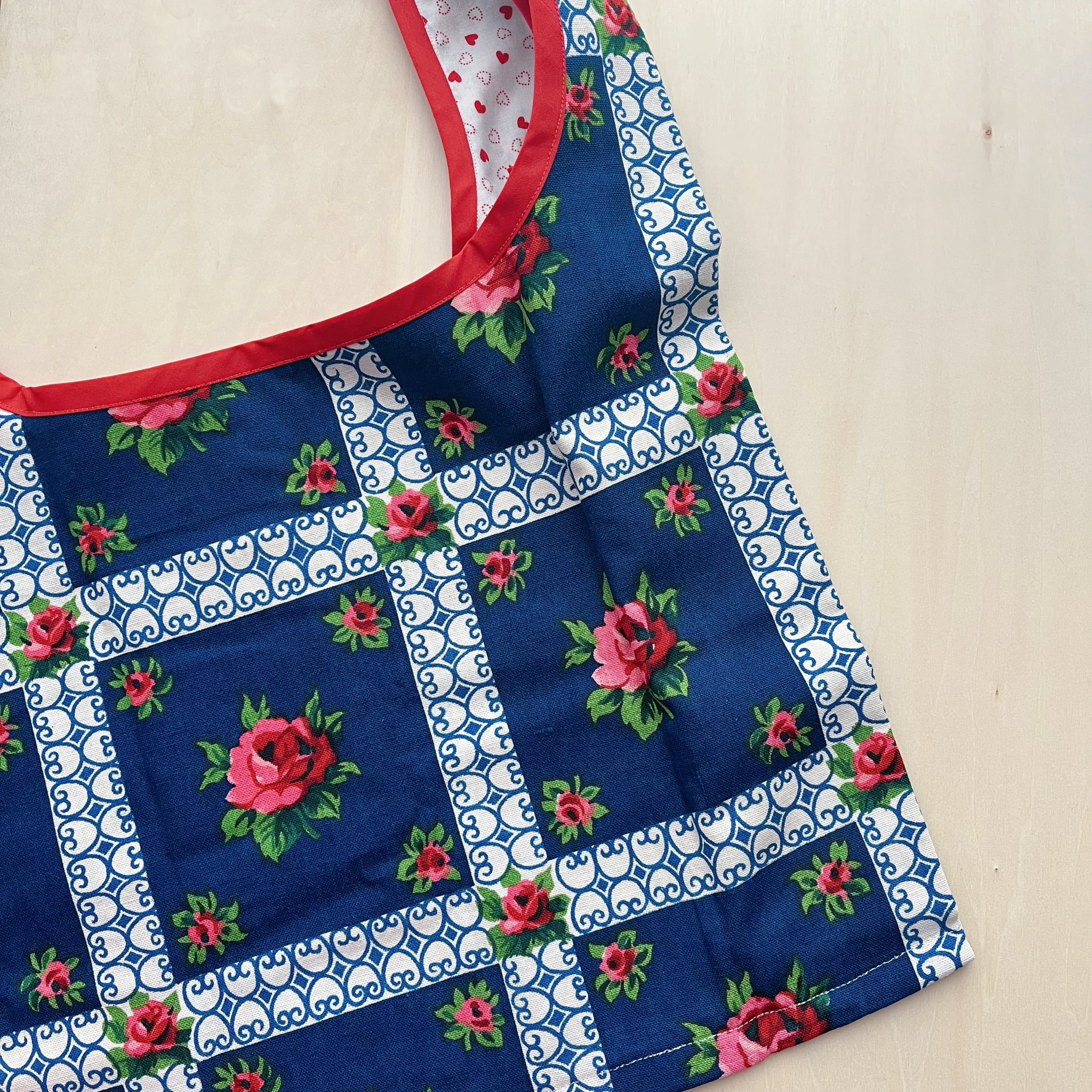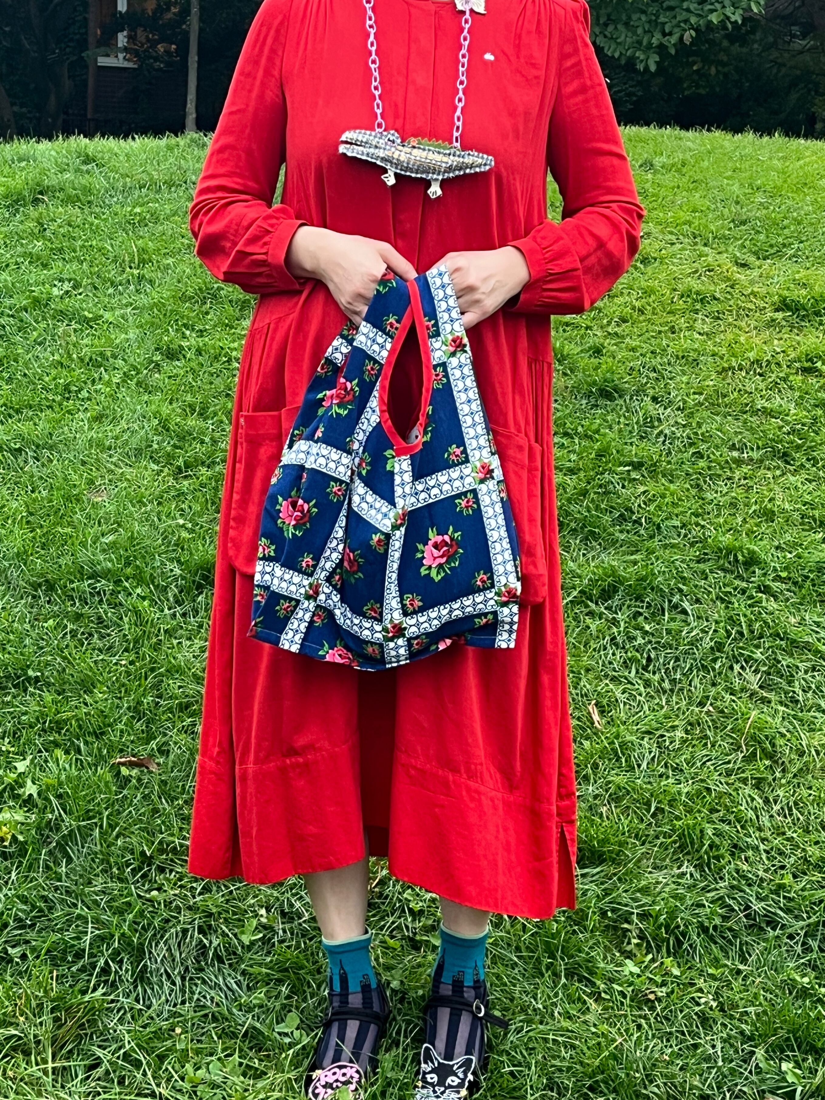 Kさまご予約品⭐︎フラリーヌバッグ ミッドナイトブルーに赤いバラの花