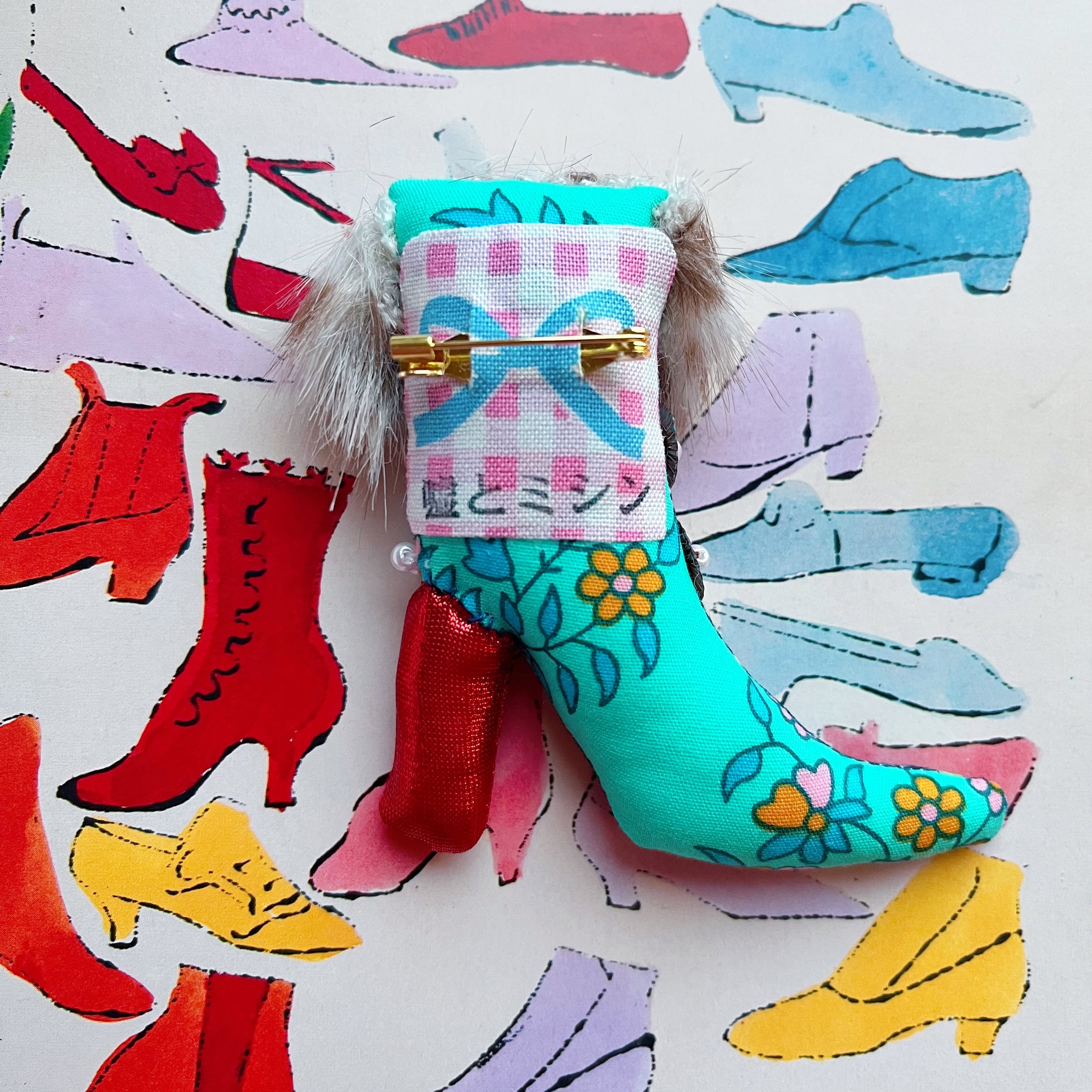 ショートブーツブローチ 夜空の星座 ひょうファー