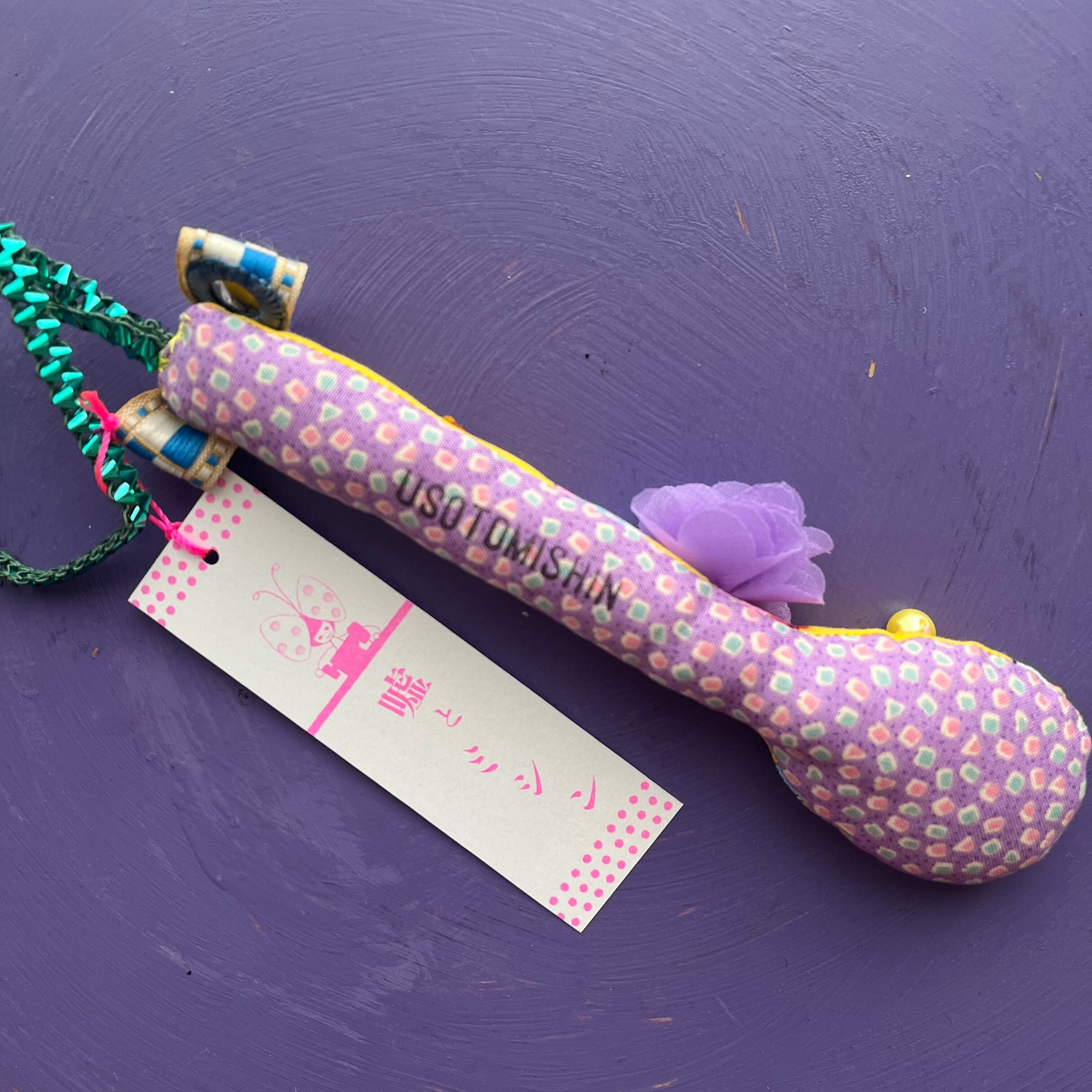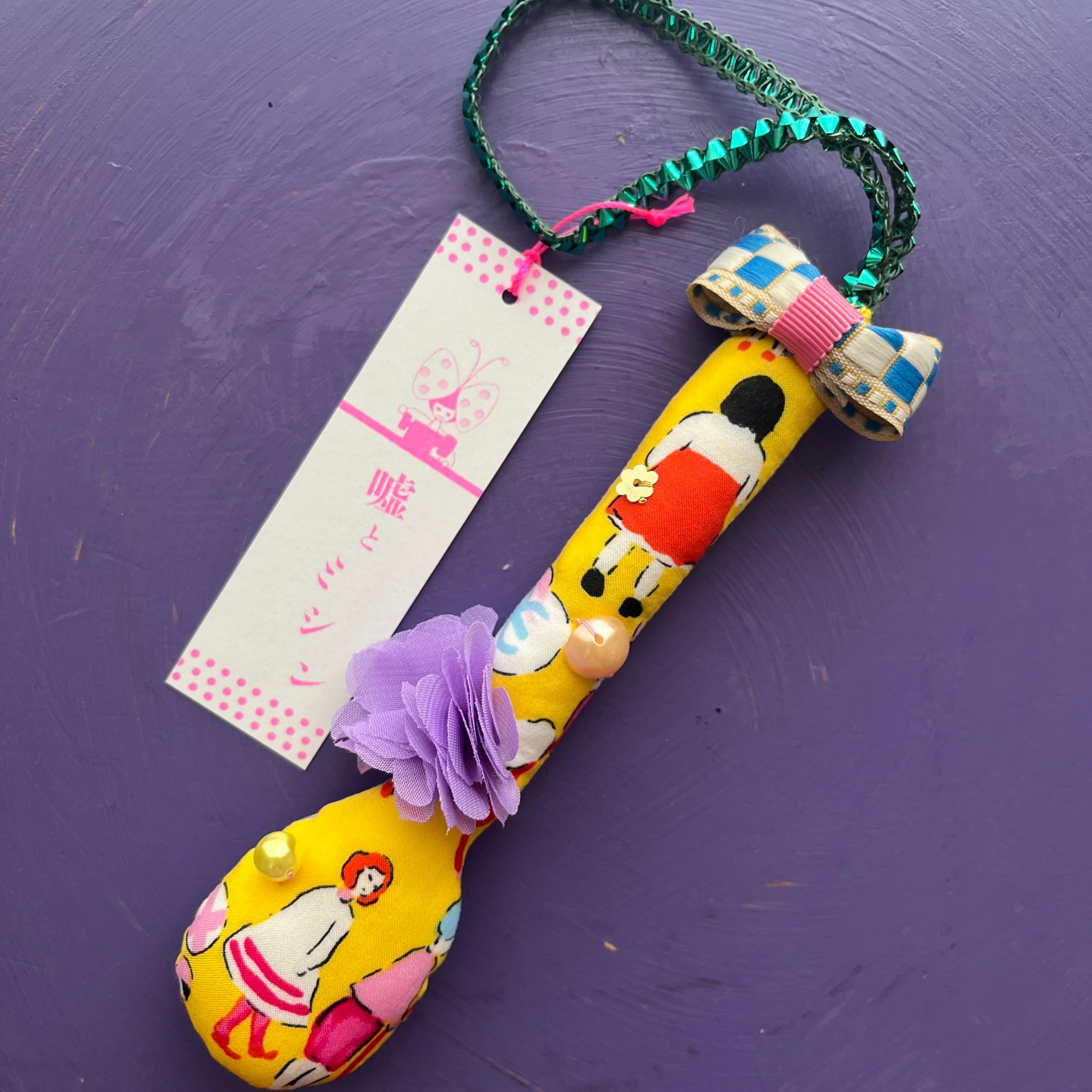先っぽにつけたリボンはインドから来た市松模様のテープで作りました。