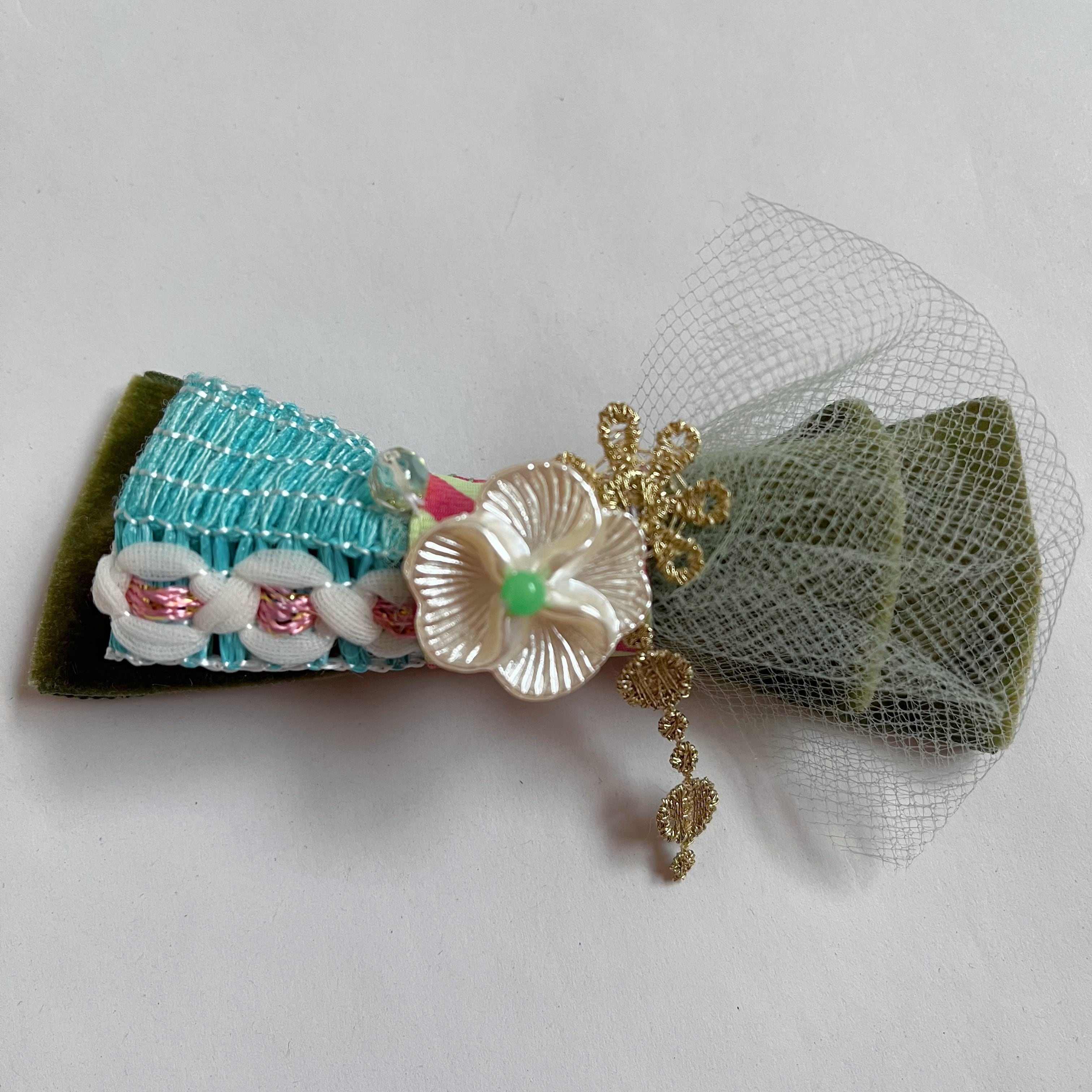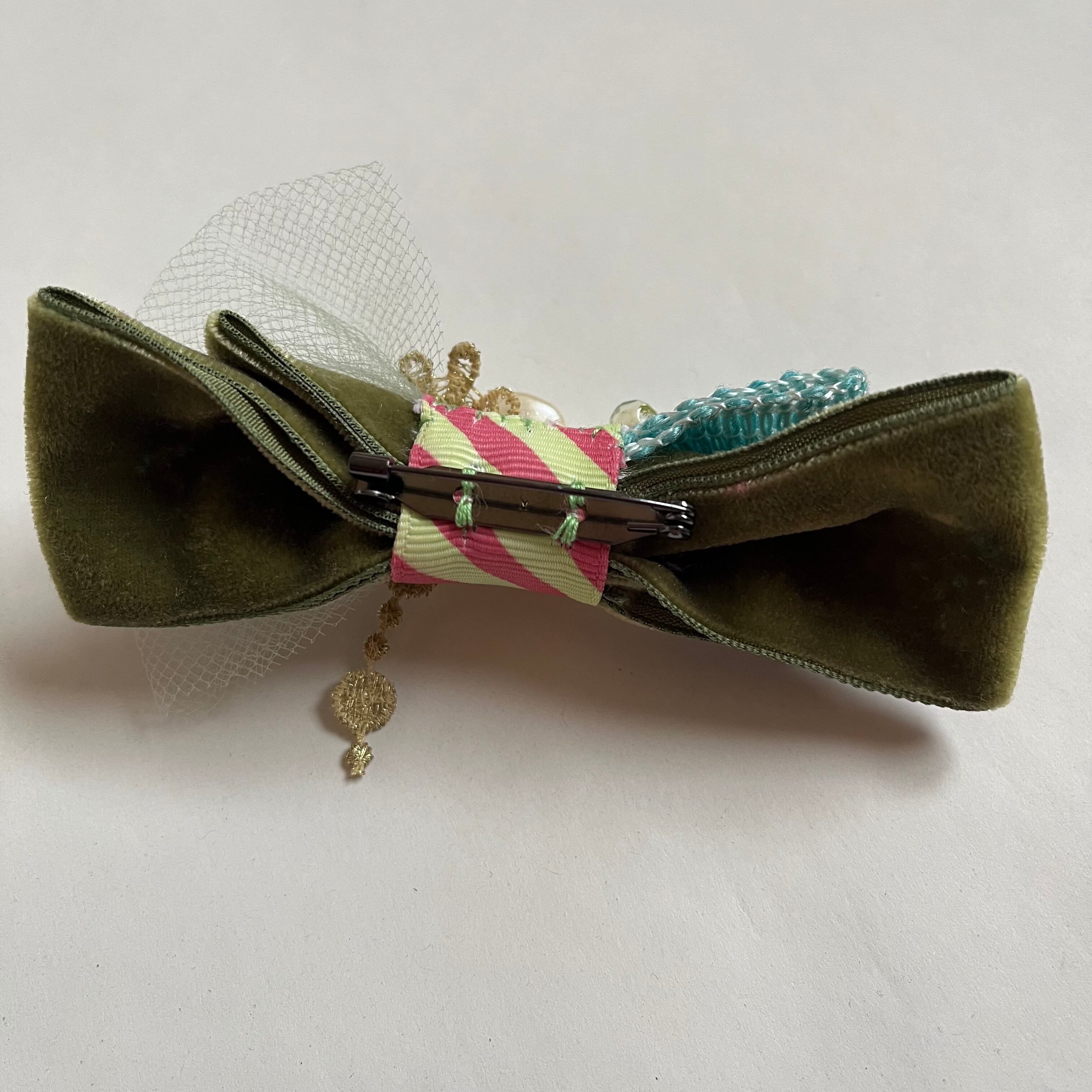 ベルベットリボンのブローチ moss green