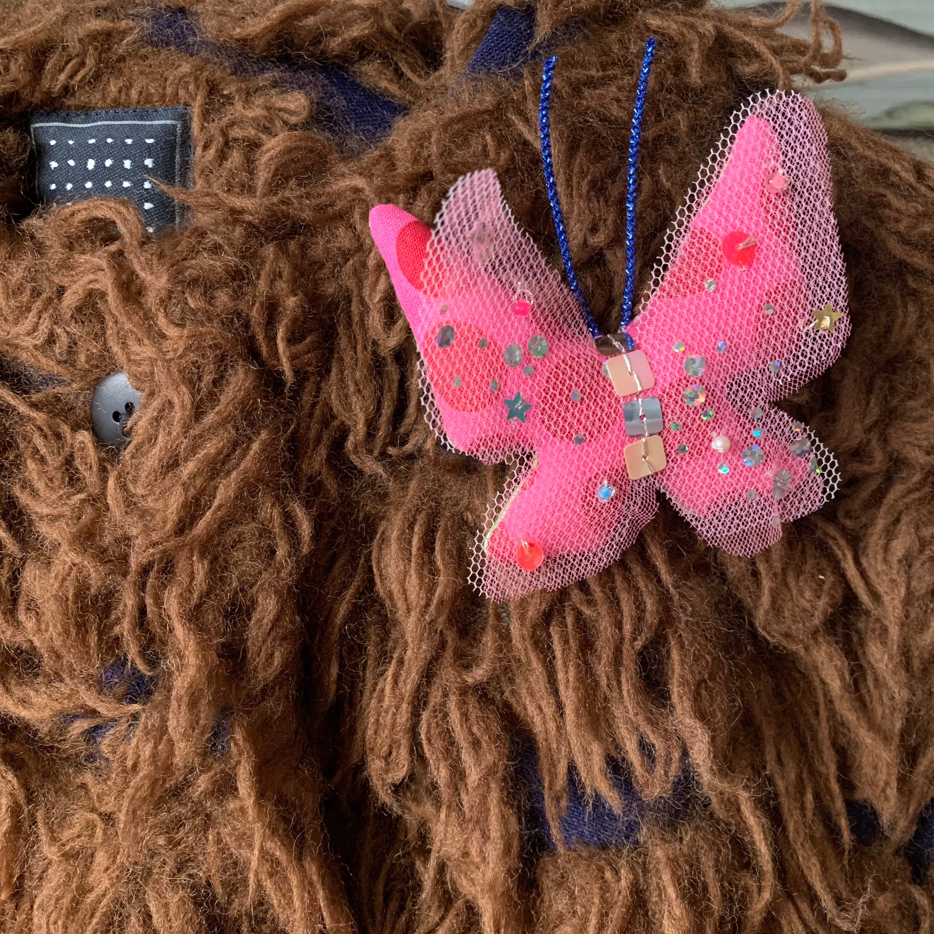 ピンク色に赤のドットが映えるキュートなちょうちょ。
