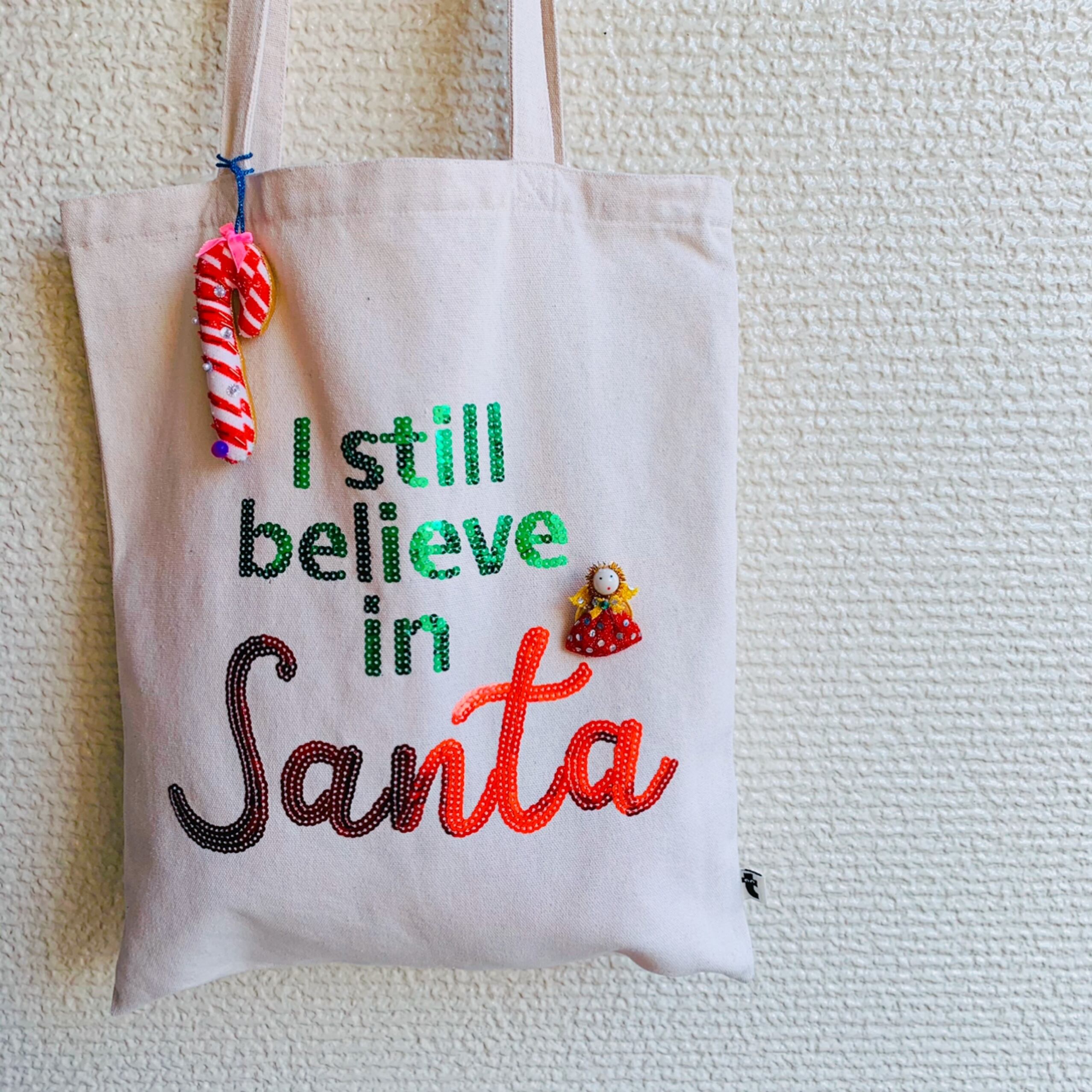 キラキラ光る赤い竹ビーズやシルバーのスパンコールを縫い留めています。