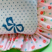 赤いお花とピンクのギンガムチェックが描かれた生地でフリルを作ってみました。