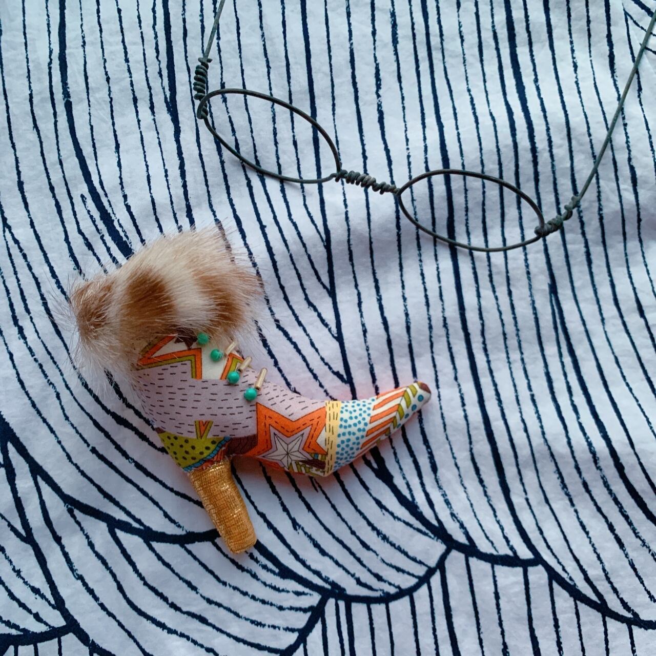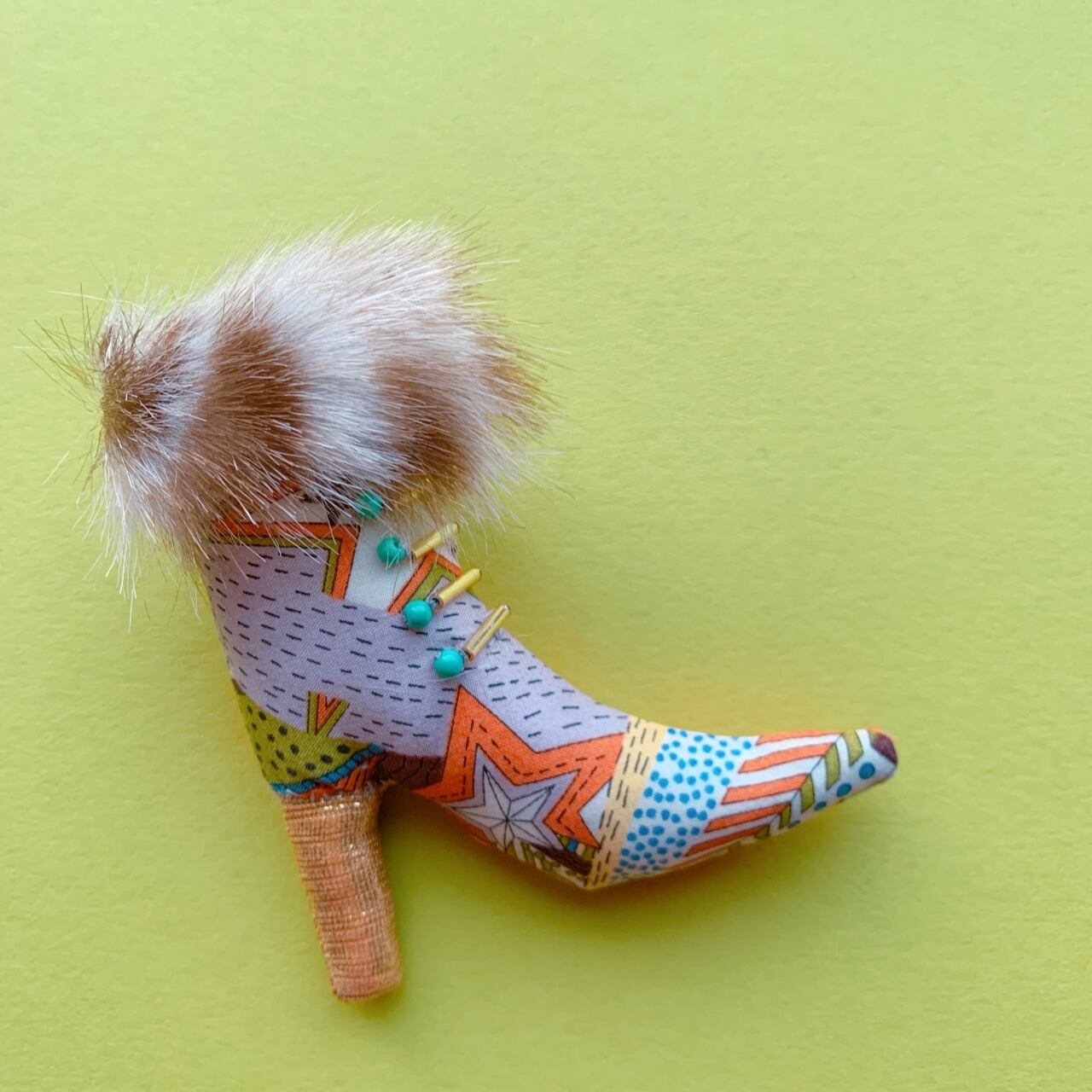温かみを感じる星柄のリバティ生地でブーツ本体を作り、