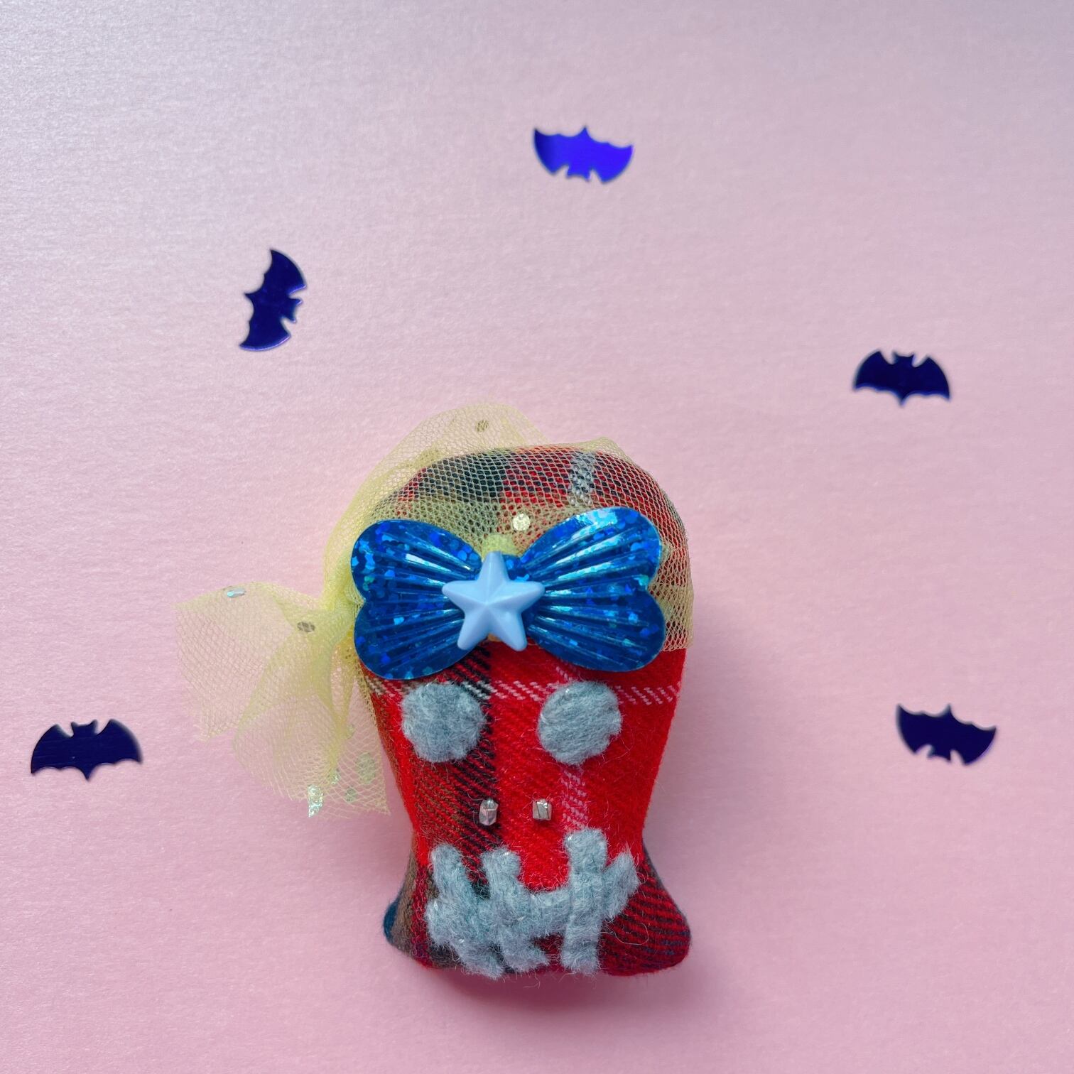 おでこにつけた大きなリボンと星の飾りもオシャレのポイント。